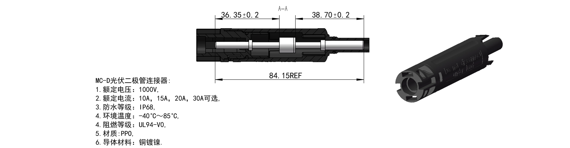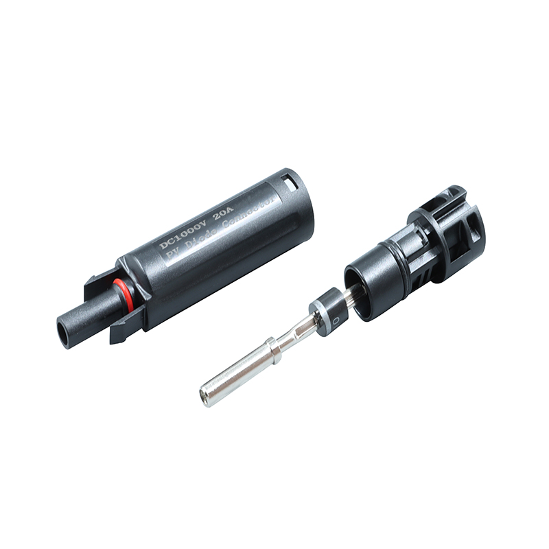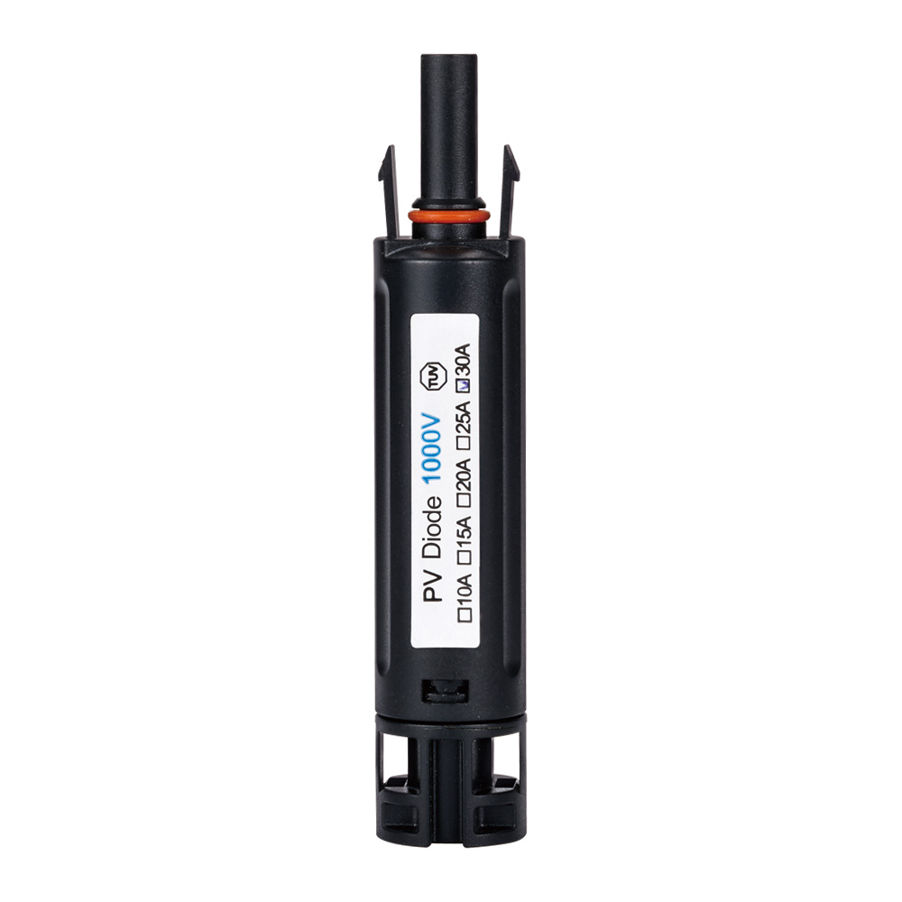 光伏防反二极管连接器是利用二极管的单向导电性,在每个组串的正极串联一个防反二极管。主要作用是:防止因光伏组件正负极反接导致的电流反灌而烧毁光伏组件;防止光伏组件方阵各支路之间存在压差而产生电流倒送,即环流;当所在组串出现故障时,作为一个断开点,与系统有效隔离,在保护故障组串的同时,为检修提供方便。