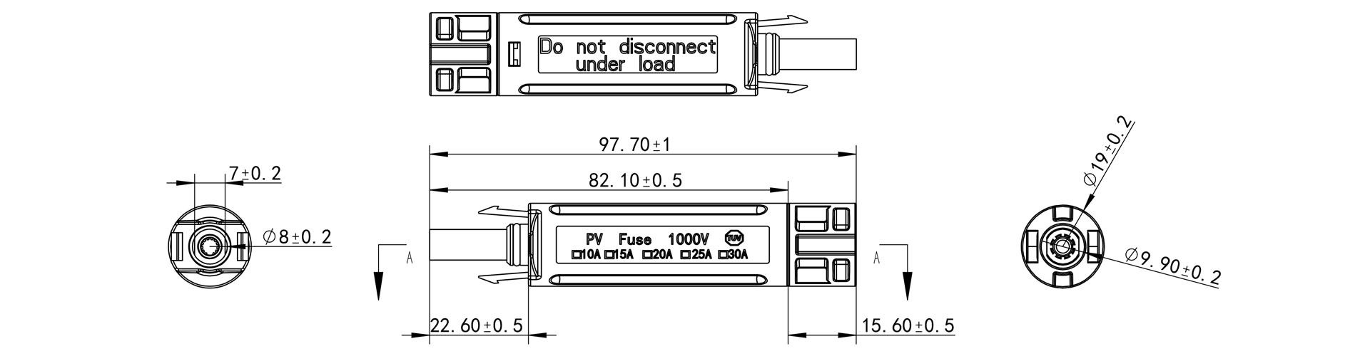 【线端】1000V TUV认证光伏保险丝连接器